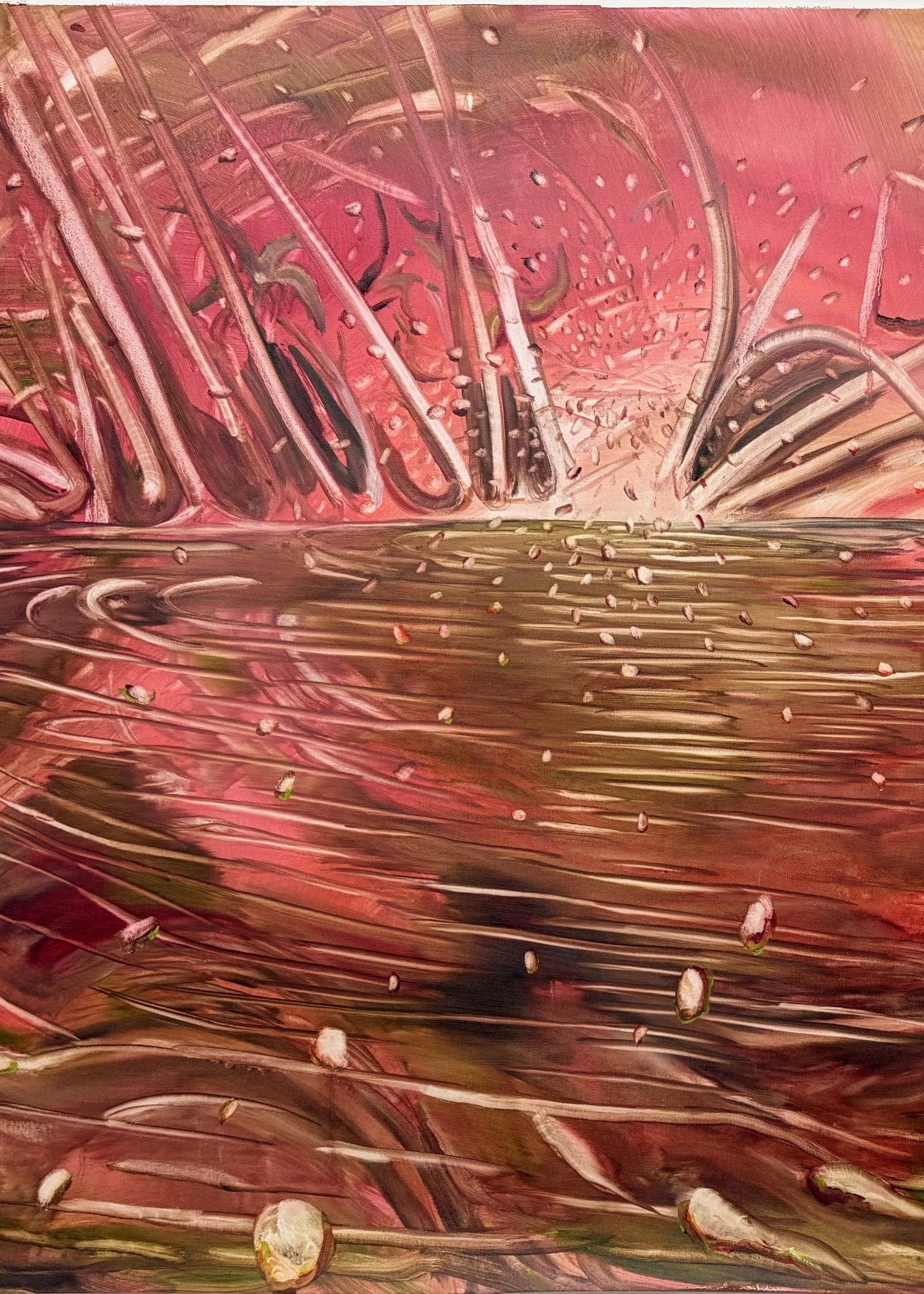 Drawing on Jane Bennett’s notion of vibrant matter, the artists approach stone, snaah, resin, copper, botanical fragments and industrial debris not as passive supports but as living materials – agents that hold, transmit and at times resist the histories impressed upon them. Each practice listens to the particular energies of its materials – how scent lingers or fades, how metal tarnishes, how paper burns or buckles, how a stone carries time. Memory is not simply something the artists depict; it is something that moves through pigments, metals, resins and scars in the land. The title Reassemblage takes its name from the work of filmmaker and writer Trinh T. Minh-ha, for whom storytelling is less a matter of delivering fixed truths than of composing with life – of speaking from within the flow of inherited stories, repetitions and interruptions. For Trinh, a story is never simply one person’s property: it is a fragment and a whole at once, a weave of past, present and future that keeps accumulating in and through the body. Here, ‘reassemblage’ names the way each artist works with fragments – of ritual, archive, debris – recomposing them without pretending to restore a single, authoritative history.