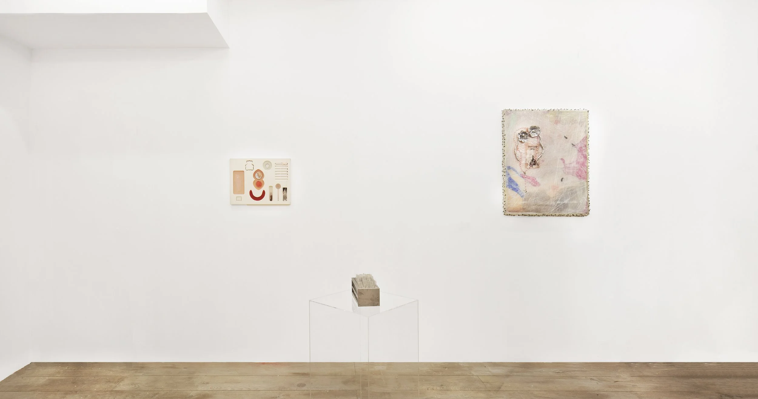 Co-curator Naz Balkaya’s sculptural work Breakup Kit (2025) lies at the heart of the exhibition — a tender and ironic exploration of heartbreak in a culture of consumer comforts. Each object becomes a metaphor for the ways we substitute consumption for care. The conversations surrounding this piece became the seed for Treatment Menu, evolving through friendship, dialogue, and shared emotional labour between artists and curators alike.